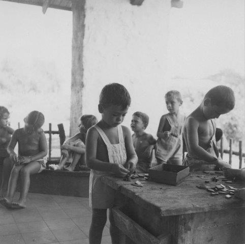שנות ה-40: ילדי הגן במרפסת הלינה המשותפת (ארכיון דגניה א')